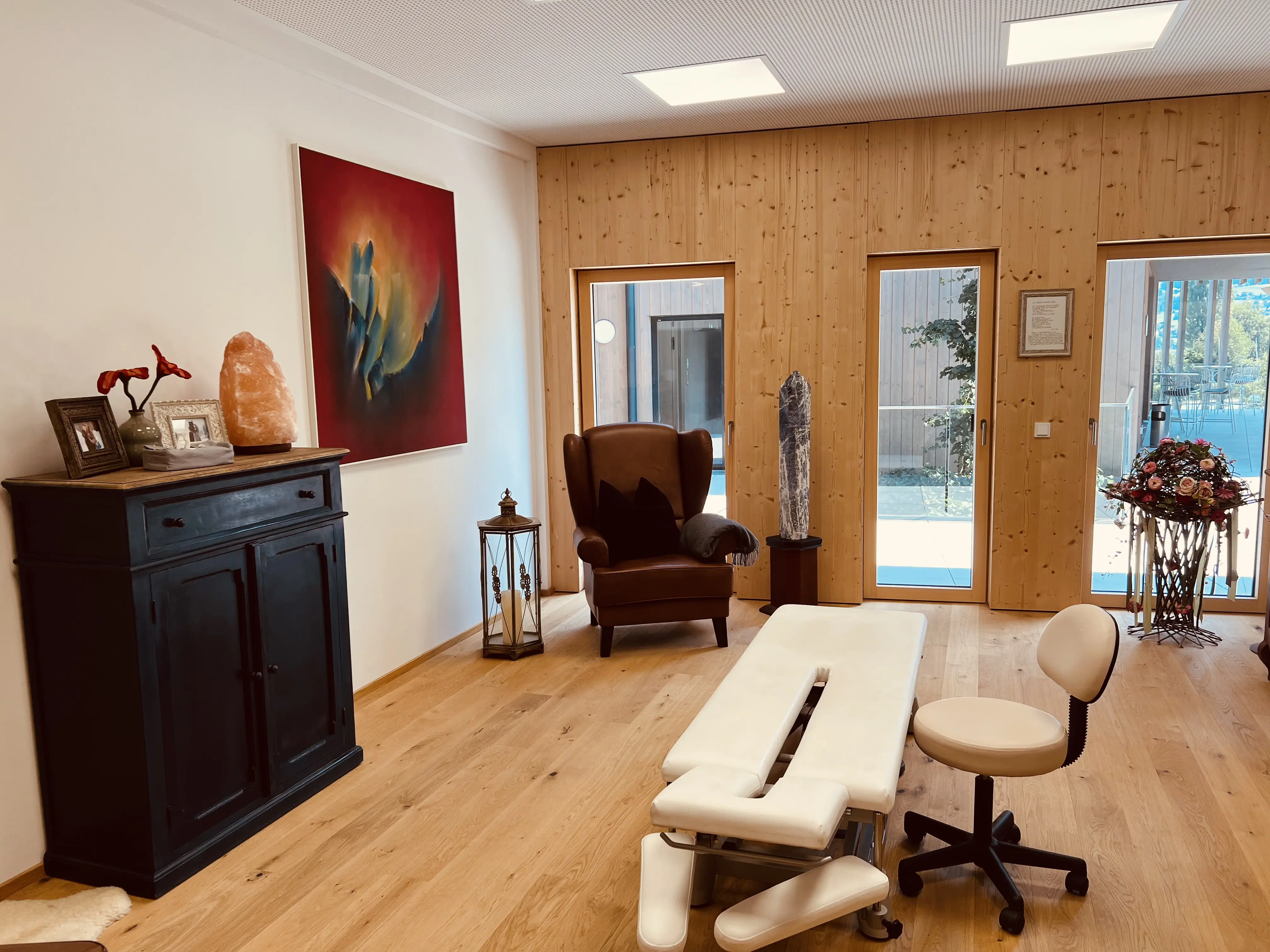 My practice at the Bio-Art-Campus in Seeham is defined by comfort and a feeling of well-being. The rooms are painted in light colours and designed to help clients let go and enjoy their appointment.